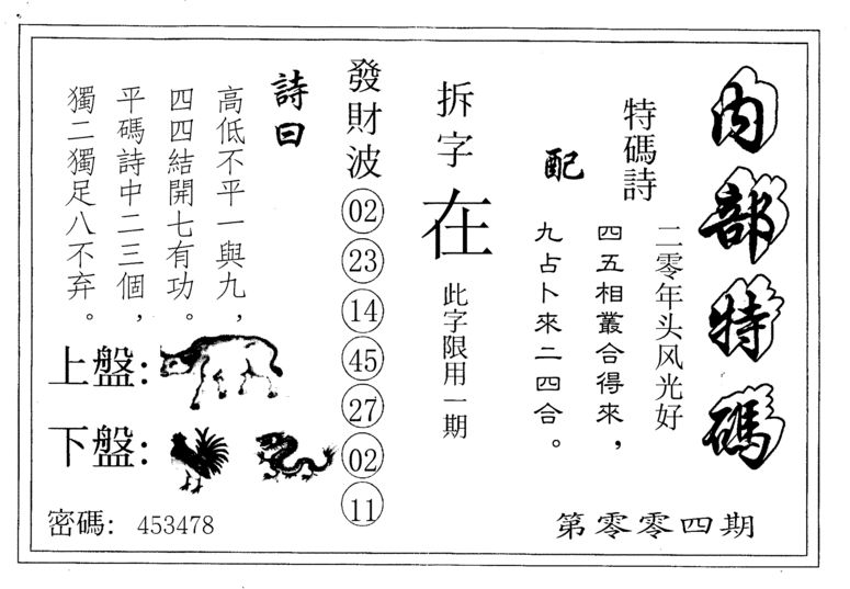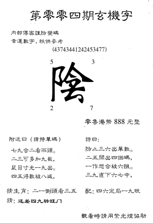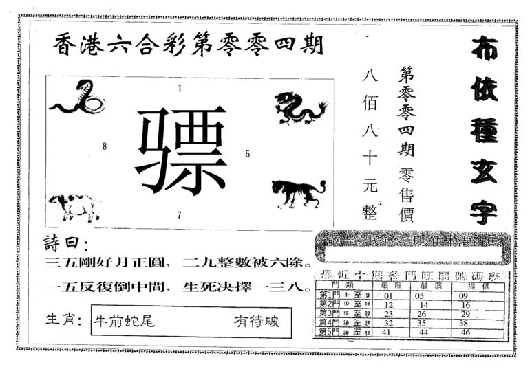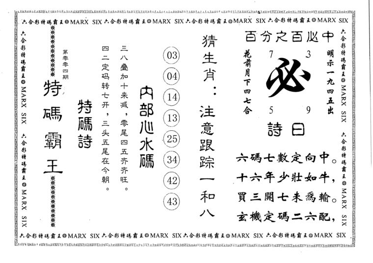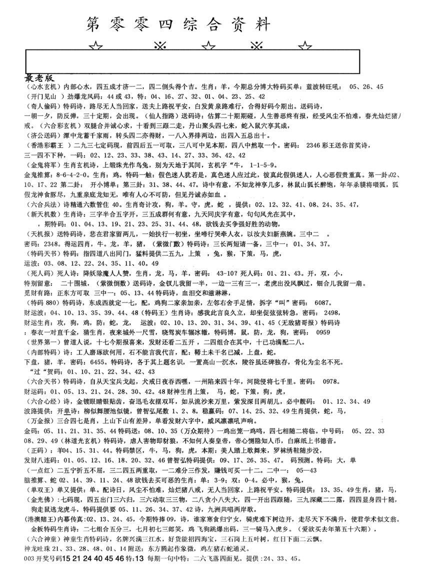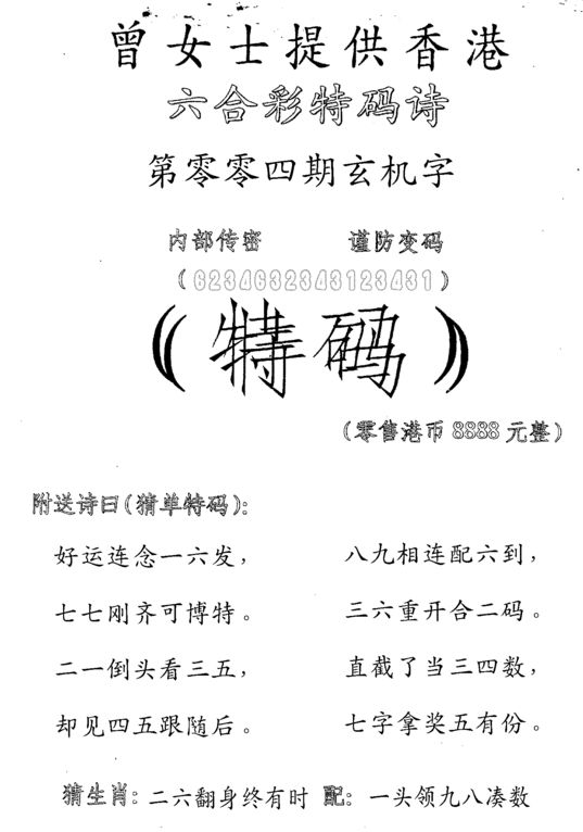 n043 假版白姐特码消息A