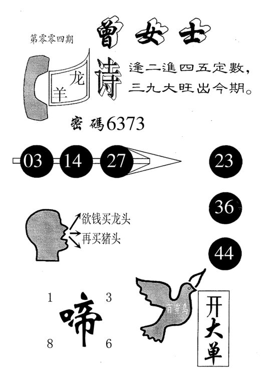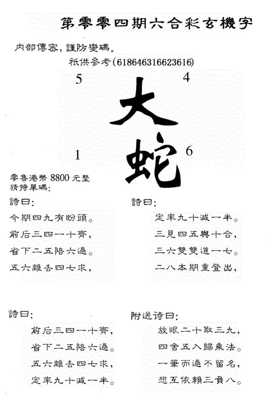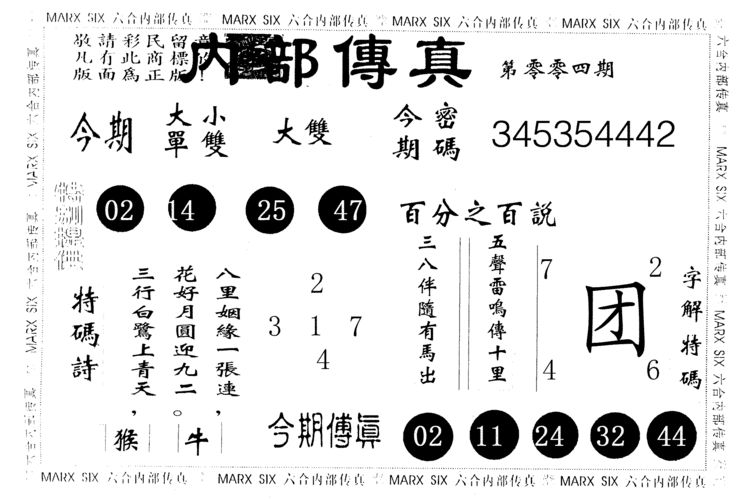 n044 假版白姐特码消息B