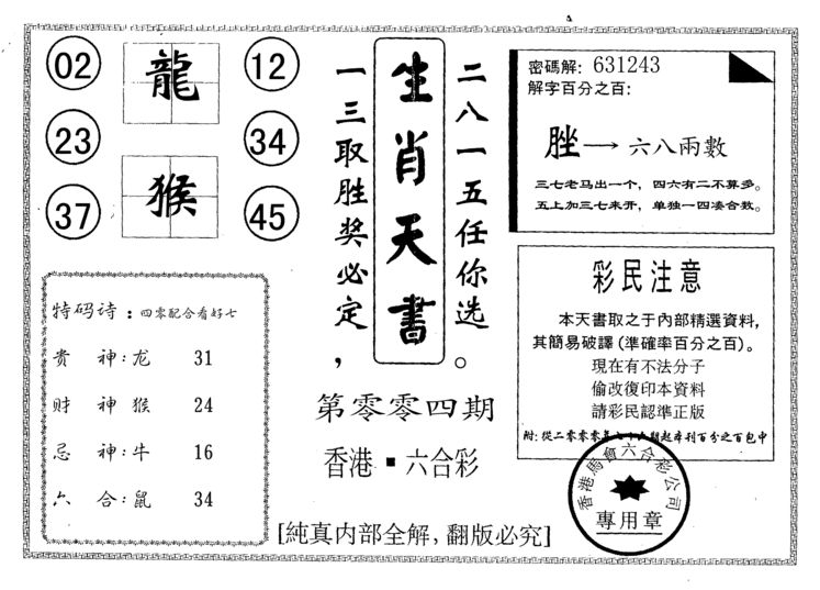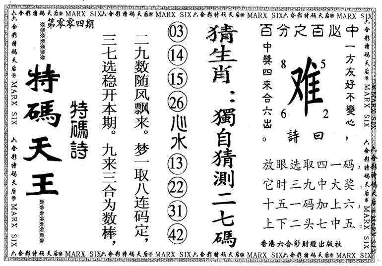 293 假版凤凰马经