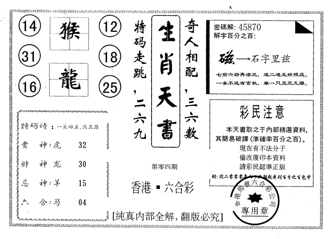 a598 生肖天书
